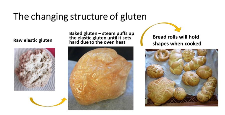 When you make bread the kneading action used during preparation is responsible for developing gluten in the dough. Gluten is ‘developed’ during this important stage.