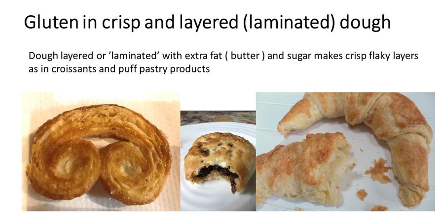 When you make more advanced pastries such as puff pastry, or Danish pastry dough you will see how gluten can help form layers that give the characteristic flaky light pastry
