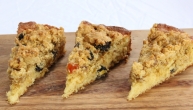 This cake with crumble top is interesting and could be served warm with stewed fruit or sliced cold as a cake.