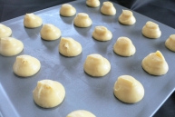 Prep: Make up the choux paste and put into a piping bag with a plain nozzle