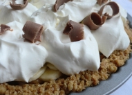 300g digestive biscuits150g butter1 400g can caramel 3 bananasJuice of half lemon250ml whipping creamMilk chocolate buttonsor chocolate curls