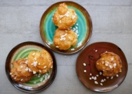 Cooks Know How: This recipe is very similar to choux pastry. It is sweetened very slightly with the icing sugar. This also means that the chouquettes turn a rich golden colour in the oven as the sugar caramelises and the ‘maillard reaction’ between the proteins and sugar takes place.