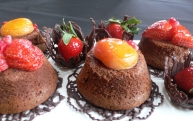Make sure the fruit is fresh and tangy to go alongside the light flour-free chocolate cakes. Serve them beautifully. The cakes provide a source of iron and minerals. The fruits give vitamin C and fibre.