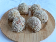 Transfer to the breadcrumbs and roll until breadcrumbs cling all over