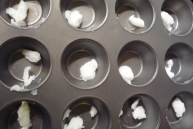 Put a blob of dripping, or some oil into each hollow of the bun tray