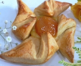 Prepare fillings of your choice: marzipan, drained or fresh apricots, stewed fruits. Glaze with egg wash and apricot glaze