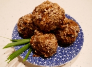 Mixing the pork with all the diced ingredients will distribute the flavour through the balls. Adding a couple of tablespoons of oil will keep the meat moist as it is cooked. The minced meat needs to reach a high temperature (over 72ºC) to be sure the meat is cooked and safe. During cooking meat fibres shrink slightly and therefore the meat balls will end up smaller than when firstly shaped, this is due to ‘denaturation’ of meat proteins. Browning that occurs on the outside of the meat balls is due to the Maillard reaction. Oatmeal helps to add crunch and hold the meat ball shape.