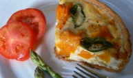 Drain any juices from the frying pan (even dab the veg with kitchen paper to dry them) Position the vegetables around the flan